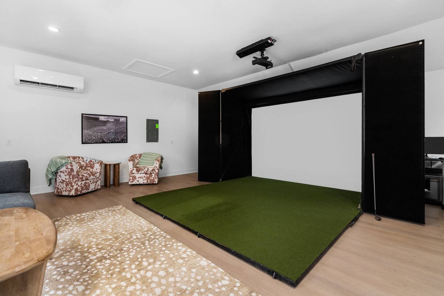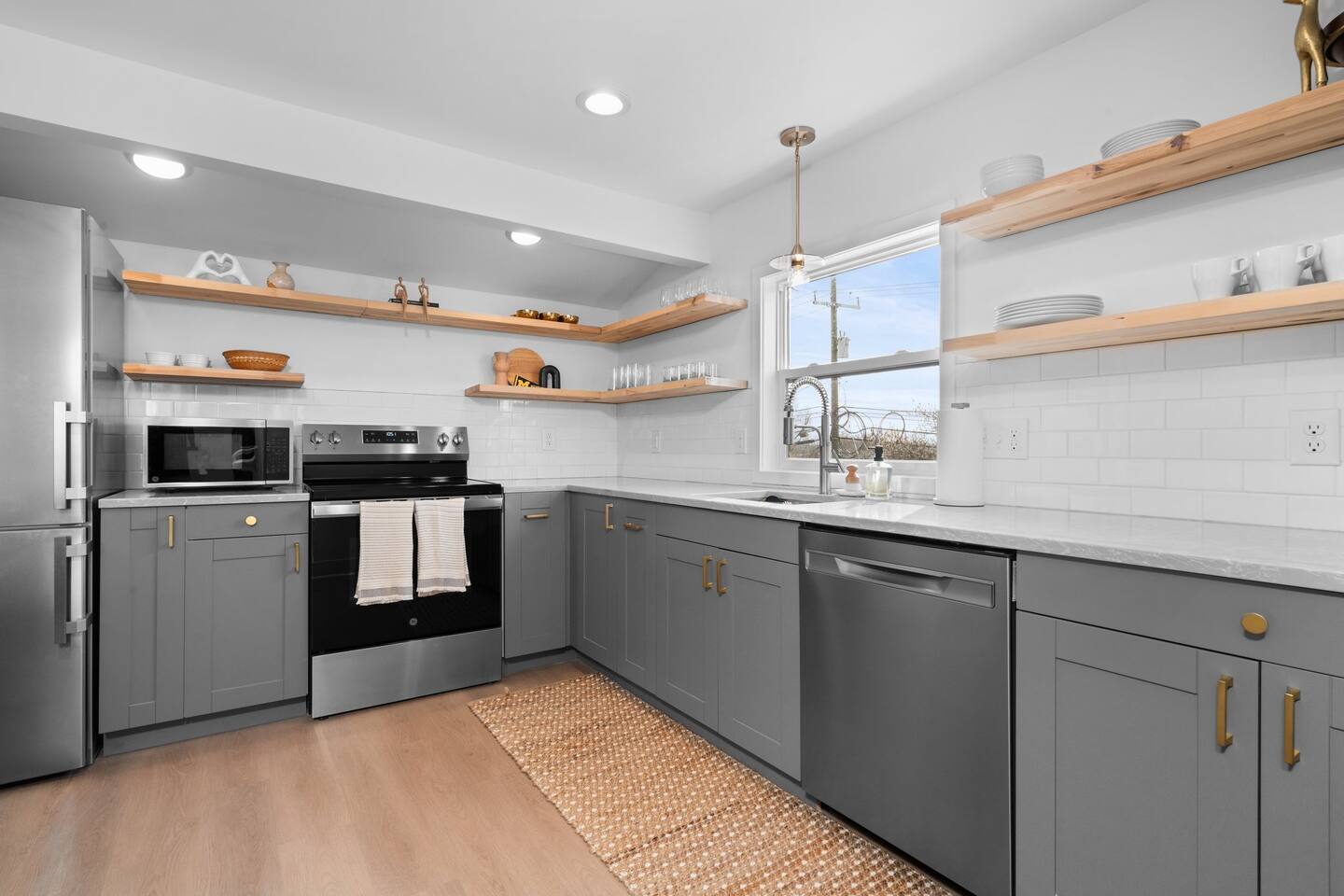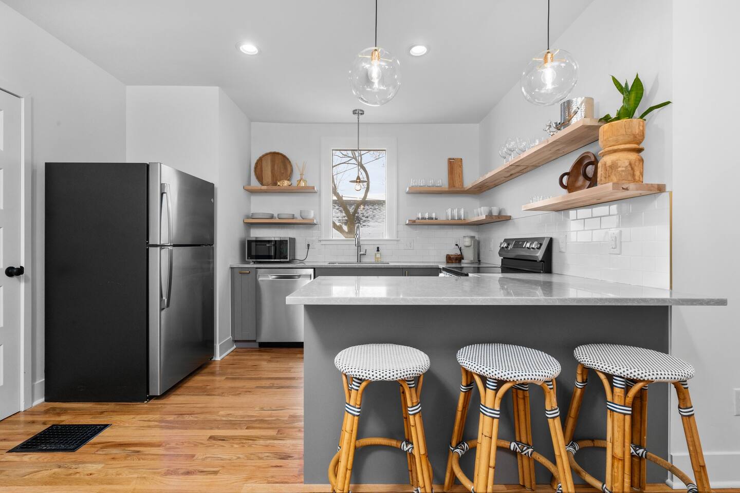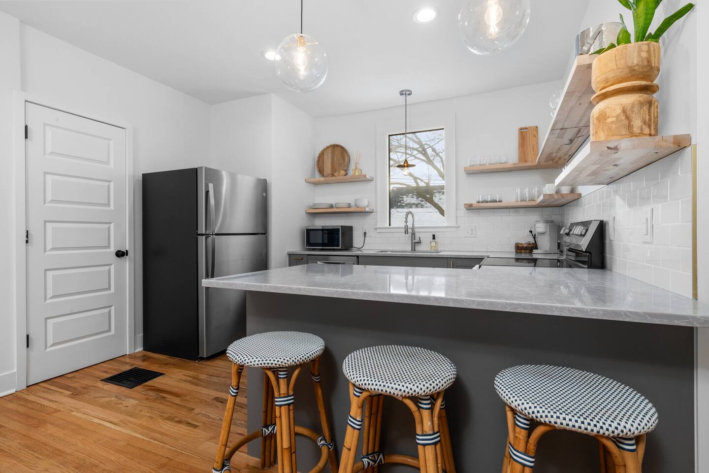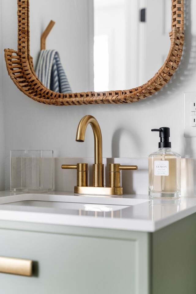 Experience the perfect fusion of historic charm and modern luxury in our fully renovated 1800s farmhouse, completed in 2024. This home beautifully preserves its original character with exposed brick and hardwood floors while introducing brand-new, high-end comforts. Designed for large groups, the house features two distinct living levels, each with its own living room and a state-of-the-art kitchen, offering both privacy and space to gather. Across the two floors, you'll find five thoughtfully furnished bedrooms. Your stay includes: 5 Bedrooms 2 Full Kitchens with state-of-the-art appliances 2 Living Rooms Brand-new bathrooms with premium fixtures Two in-unit washer / dryers A crib for our youngest guests (just ask) A rare, grassy yard For an unforgettable entertainment experience, inquire about our exclusive Party Bungalow. This separate, on-site guesthouse is available upon request and features a golf simulator, virtual games, and a movie theater. Please note that access is subject to availability and may require an additional fee.