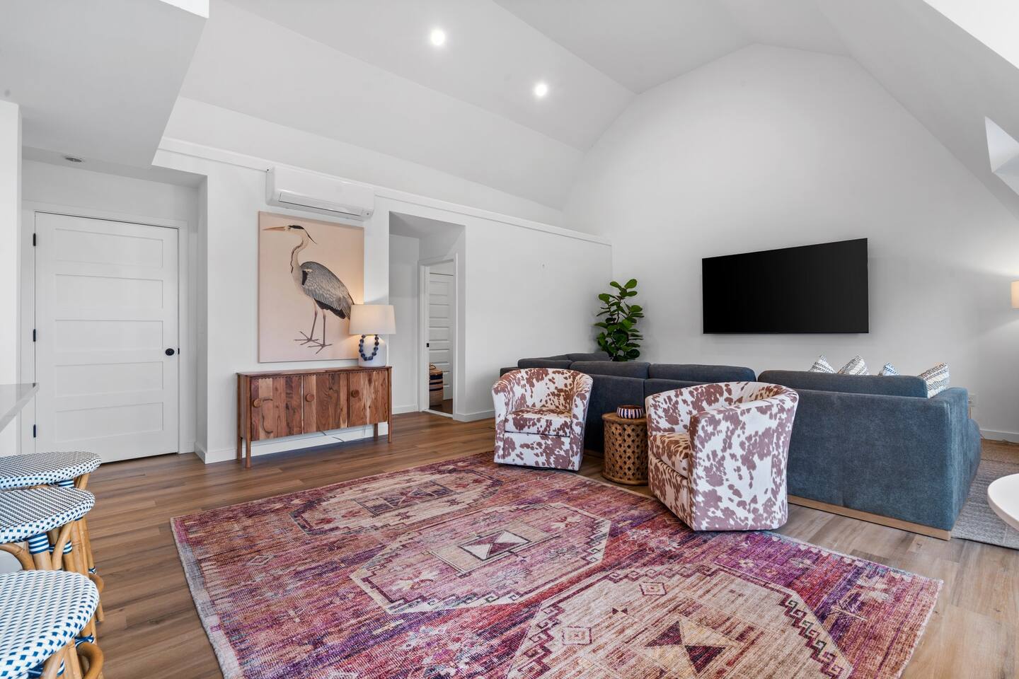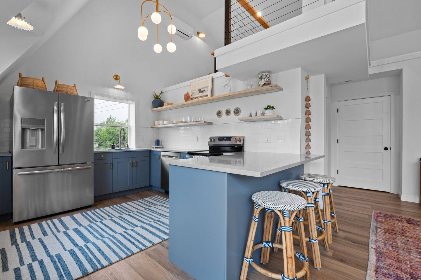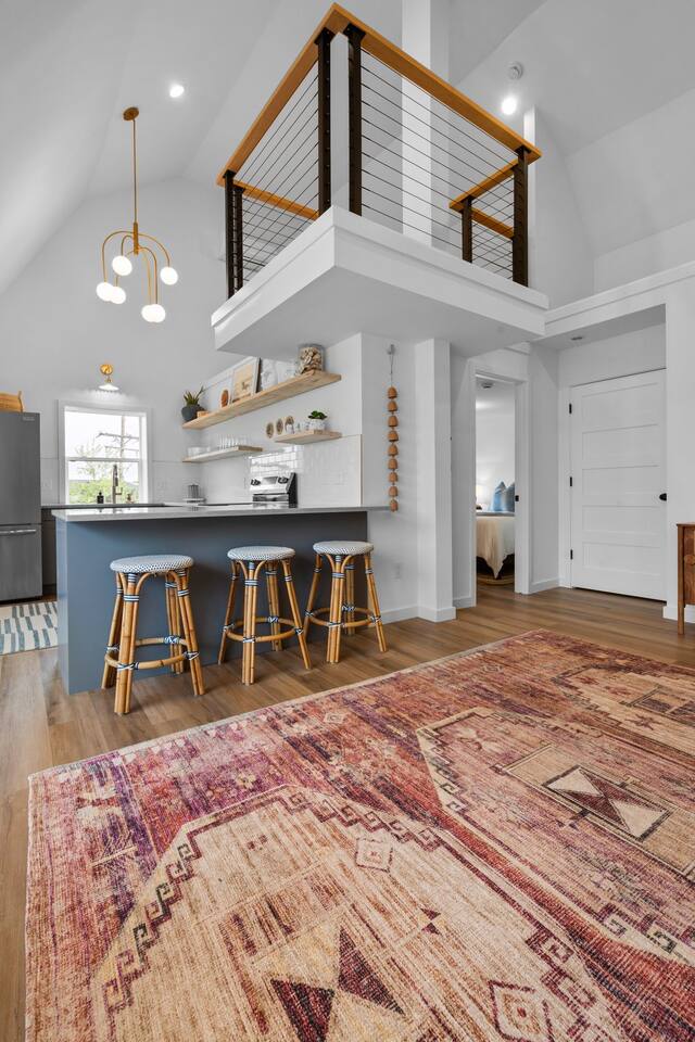 Step into a one-of-a-kind 1800s barn penthouse featuring soaring 18-foot ceilings, a crow’s nest office loft, and designer finishes throughout. This completely renovated upper-level retreat blends historic character with modern luxury—perfect for couples, creatives, or extended stays.