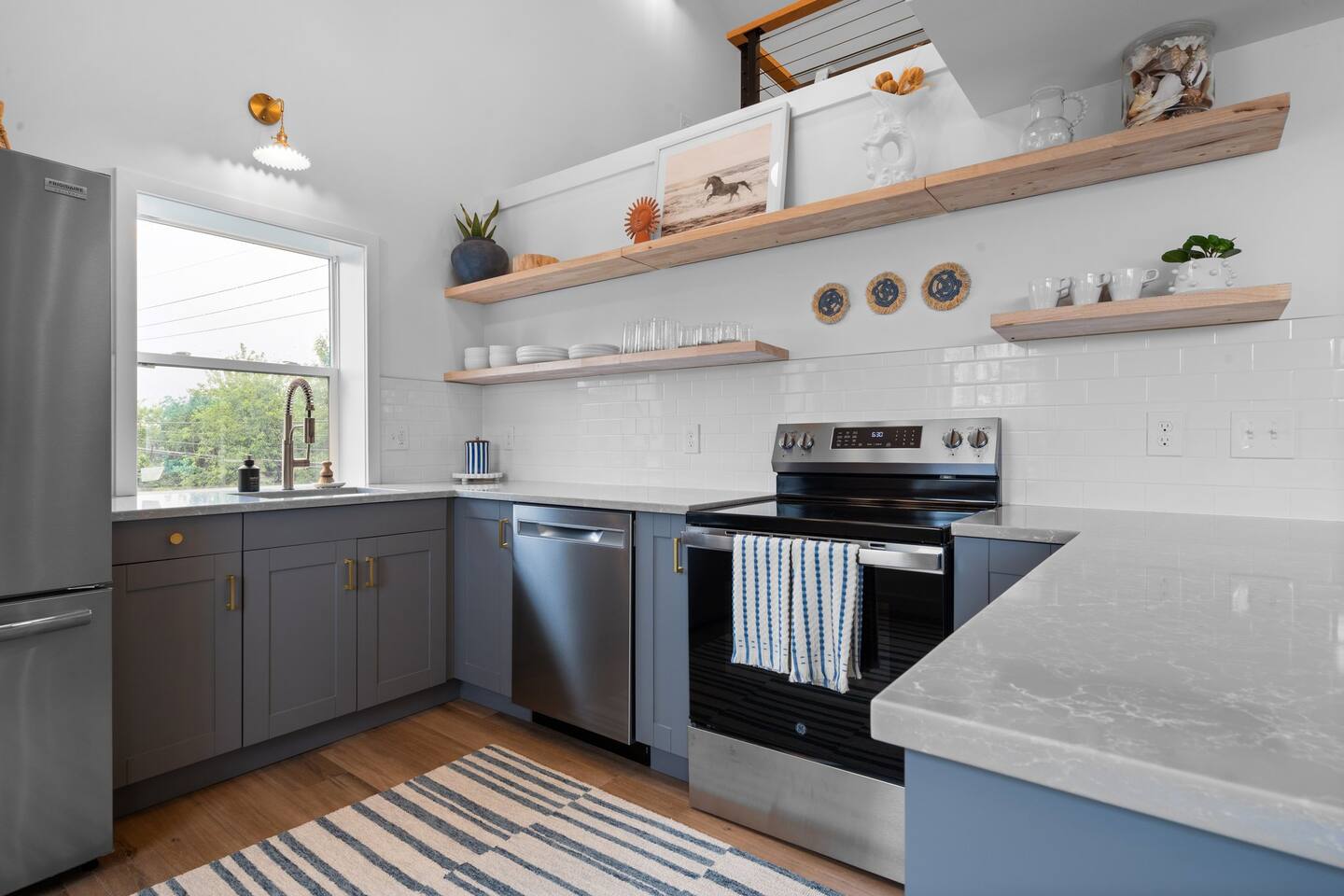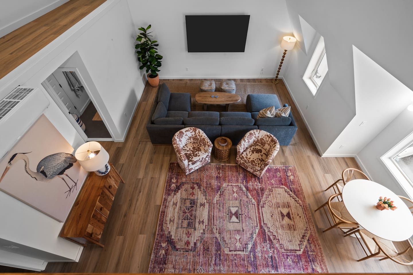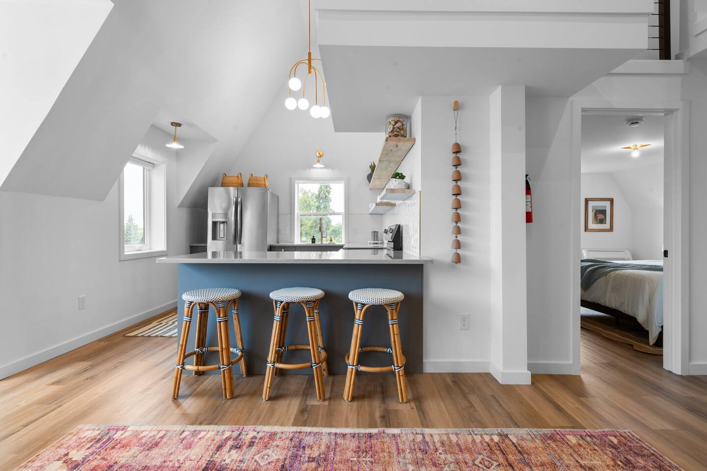 Step into a one-of-a-kind 1800s barn penthouse featuring soaring 18-foot ceilings, a crow’s nest office loft, and designer finishes throughout. This completely renovated upper-level retreat blends historic character with modern luxury—perfect for couples, creatives, or extended stays.